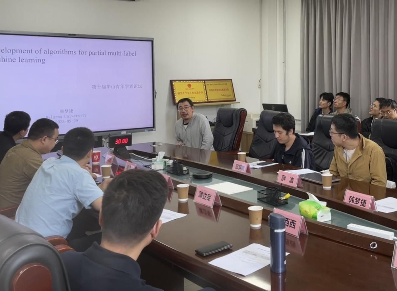 (通讯员:郭清滢)9月29日下午,“IFHS·2025第十届华山青年学者论坛——数学与统计学院座谈及报告会”于西电南校区举办。瑞典达拉纳大学的韩梦捷副教授、巴黎第七大学的邱羿钢博士以及香港城市大学的薛波博士以及学院领导和相关研究领域的教师、研究生参加了此次论坛。