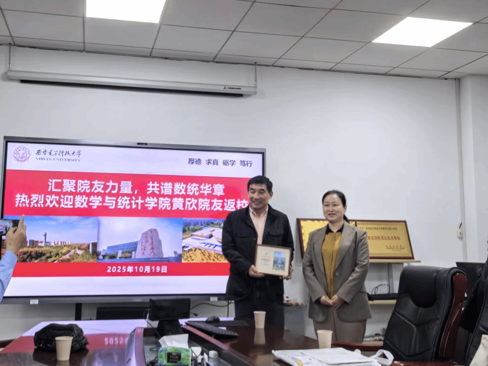 (通讯员 纪端阳)银杏翩翩,情暖西电。在2025年校友日期间,数学与统计学院于10月19日上午在南校区举办校友返校座谈会,热烈欢迎77级数学师资班黄欣校友返校,学院领导及教师代表参加此次座谈。会议由副院长王晓华主持。大家共叙往日情谊,畅谈科研发展与学院未来。