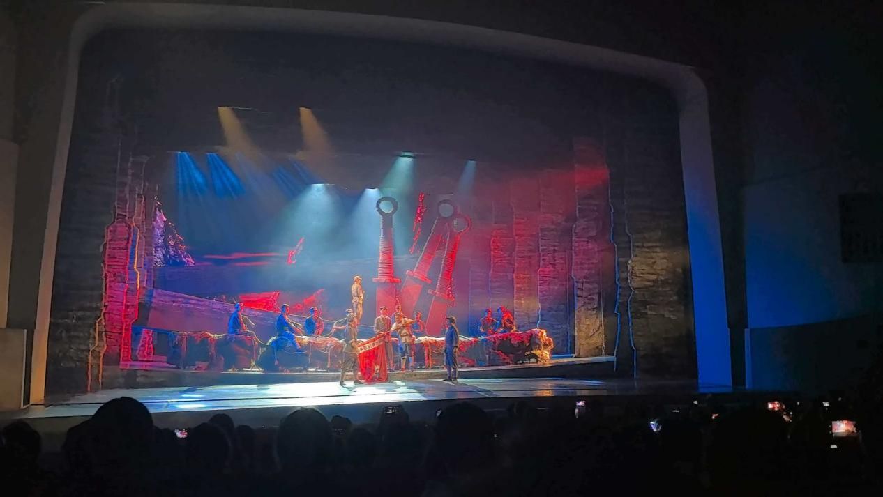 大家还共同观看了大型红色主题演出《延安 延安》。此剧采用倒叙手法,以老红军栓柱的回忆作为开场,讲述了女大学生白雁鸣与欧阳坚、栓柱两位红军战士之间战斗、学习、成长的故事。这场融合了音乐、舞蹈、杂技等多种艺术形式的演出,以震撼的舞台效果和感人的故事情节,生动再现了革命青年奔赴延安、献身革命的火热岁月,将观众带回到那个战火纷飞却又激情燃烧的年代。