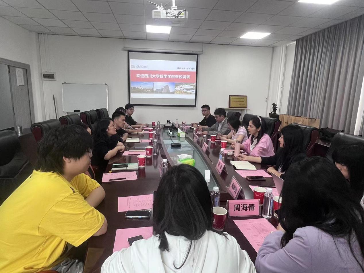 (通讯员 靳志伟)为进一步创新学生工作思路,加强与兄弟高校的工作交流,提升人才培养质量,4月22日,四川大学数学学院党委副书记张丹一行6人、西北工业大学数学与统计学院团委书记程姣姣一行2人到访数学与统计学院,聚焦学生党支部标准化建设、学风建设、深造就业、学工队伍建设等方面进行深入交流。数学与统计学院党委副书记王佩、团委书记靳志伟、本科生辅导员赵春霞、研究生辅导员孙群、学生代表参会。