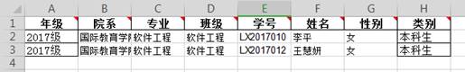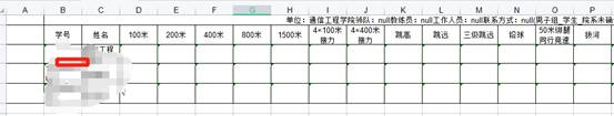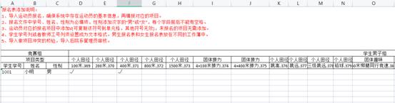 (3)将参赛学生学号、姓名、性别填写到文件中,并勾选学生所报项目。