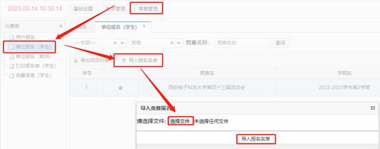 报名过程中如出现学生信息或教师信息不存在的情况,请各负责人将学生信息或教师信息整理。后台管理员收集负责导入