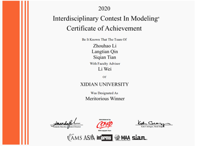 2020.04 美国大学生数学建模竞赛国际一等奖