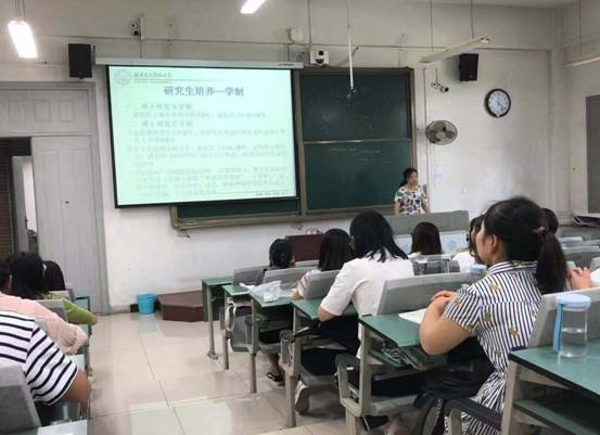 接下来辅导员孙群老师对此次入学教育做了简单介绍,对顺利考入我院的各位同学表达祝贺。简要介绍了学校基本情况,介绍了我院历史沿革、组织架构、学科特色、师资力量、教育教学等情况,简要说明研究生入学注意事项,然后着重从弹性制学制、培养方案等方面详细阐述了我校研究生教育的具体情况,并从规章制度、课程安排、论文质量监控、学位成果要求等方面讲解了学院研究生的培养流程和管理体制,详细解读研究生奖助金政策;最后就校园贷、传销、电信诈骗等方面结合实例进行安全教育。