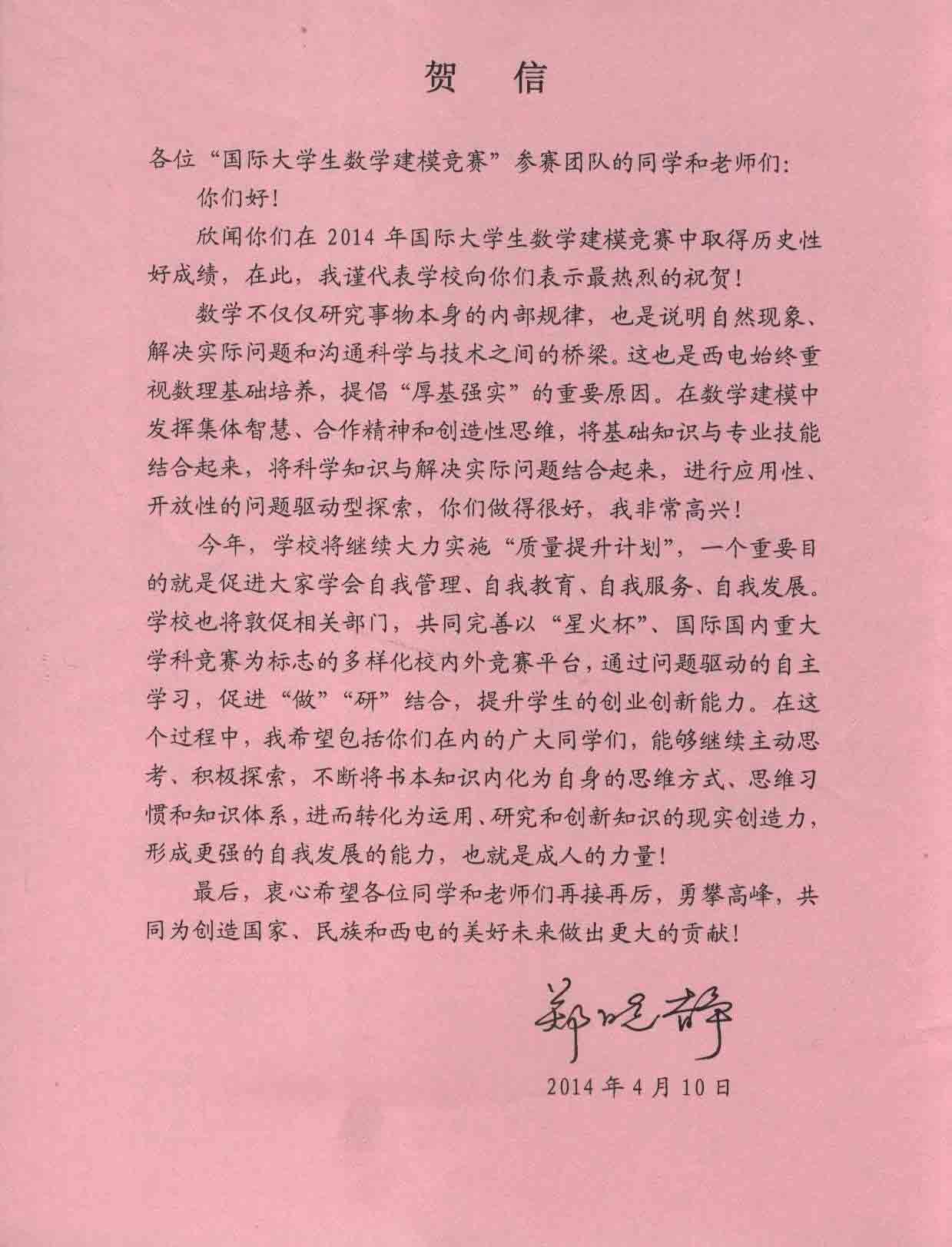 2014年5月31日至6月1日,我校数学建模教练组与数学建模参赛学生应邀参加了在西北工业大学举办的2014交叉学科数学建模学生论坛。