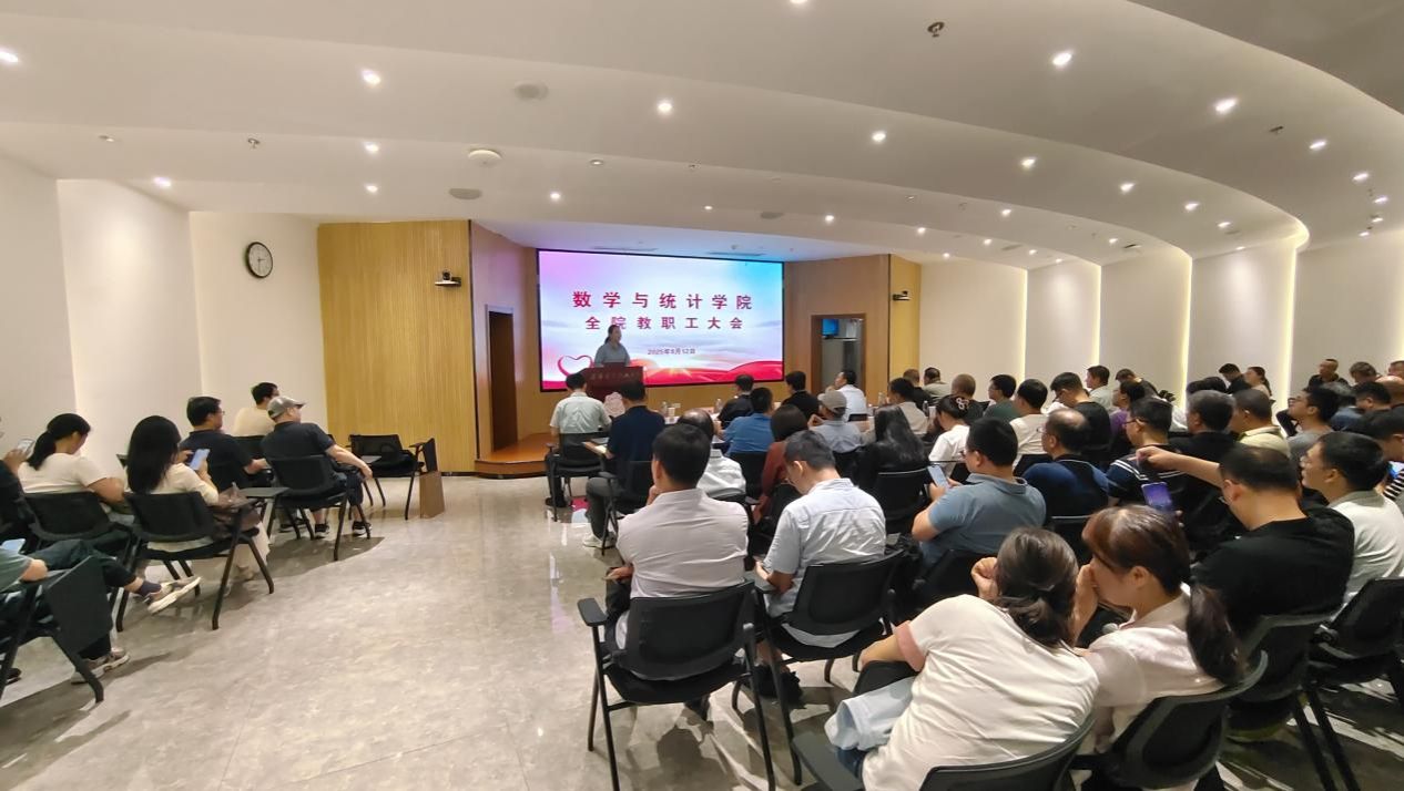 9月12日下午,数学与统计学院在南校区网安大楼会议中心101报告厅召开全院教职工大会,传达学校工作会议精神、安排部署学院下半年工作。学院领导班子、全院教职工参加会议,大会由副院长王晓华主持。会上,执行院长薄立军以《数统共进谋发展,砥砺奋进谱新篇;学科深耕强特色,质量筑基攀高峰》为题,从学院概况、工作进展、未来发展三个方面,详细分析了学院对学校2025年重点工作完成情况,明确提出了学院下半年的工作任务和工作安排。...