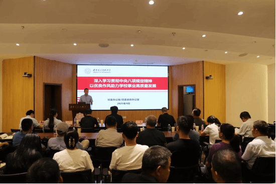 为巩固拓展学习教育成果,持续加强师德师风建设,9月12日下午,数学与统计学院在南校区网安大楼会议中心101报告厅,举行深入贯彻中央八项规定精神学习教育暨师德师风警示教育报告会,邀请校党委巡察办公室巡察专员杨寒作专题辅导报告,学院全院教职工参加了本次专题辅导报告。报告会上,杨寒以《深入贯彻中央八项规定精神学习教育》为主题,结合高校教师职业特点与典型案例,从中央八项规定精神的核心和实质、违反八项规定的具体表现和典型案例、...