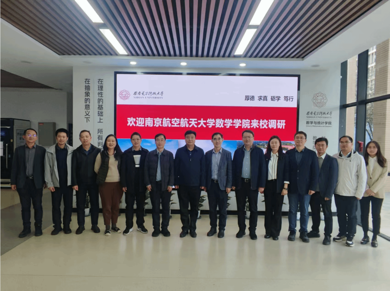 10月30日下午,南京航空航天大学数学学院党委书记张跃、院长王春武、党委副书记王亚鹏、副院长蒋建林、副院长龚跃政等一行7人到访我院。西安电子科技大学数学与统计学院党委书记杨生海、执行院长薄立军等学院领导参加调研座谈会。首先,薄立军代表学院对南航数学学院的来访表示欢迎,并详细介绍了我校的办学历史,以及学院近年来在学科发展、师资队伍建设、科学研究、人才培养等诸多方面取得的成绩。随后,王春武详细介绍了南京航空航天大学数学学院的基本情况。...